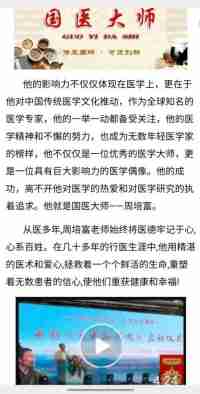 他以德行医,以技精医,不仅把高超的医德仁术造福于天下桑梓,还把构建中医特色诊疗体系建设、让每一个人都拥有健康作为他毕生追求的崇高目标和实现自身价值的神圣事业。他学贯中医,广汲传统中医民间精华,博采众长,躬耕...